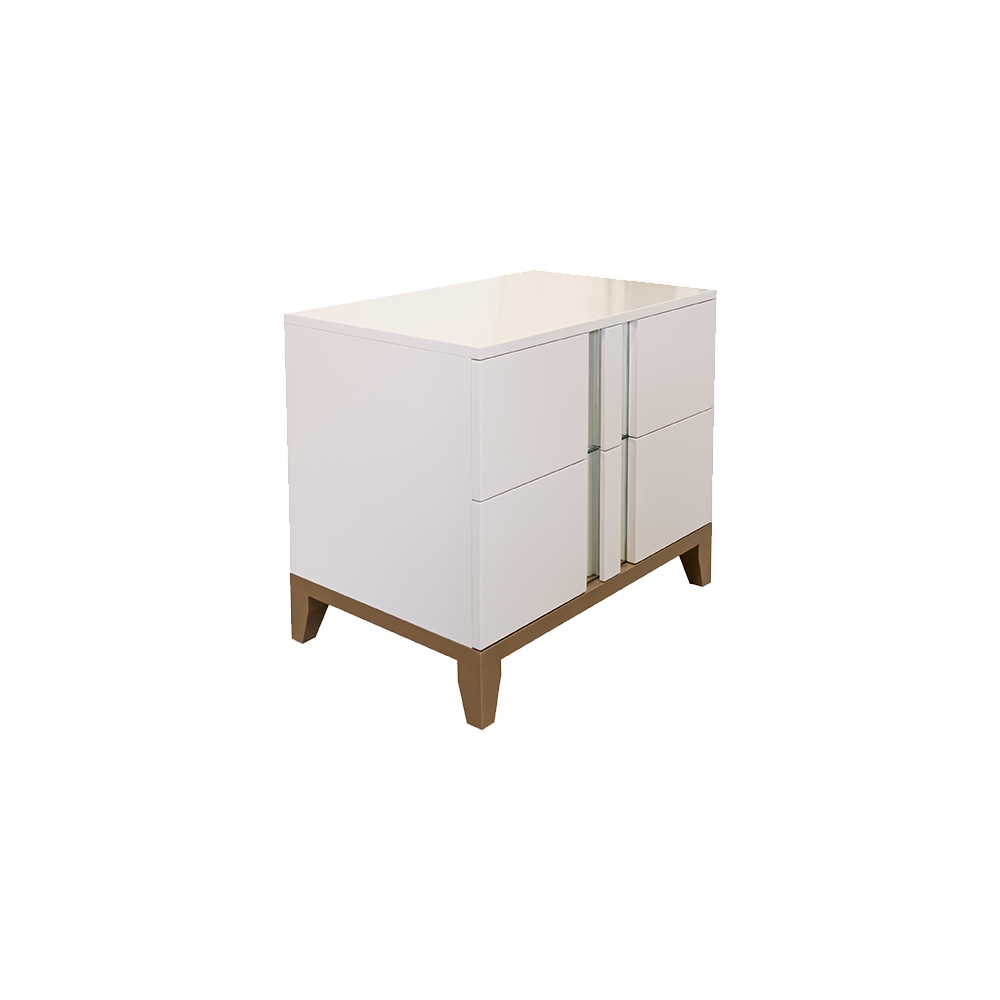 "This jazzy Intercoil Split Nightstand will add a new vibe to your room. A charming wood sideboard like this one could be utilized as a media console and will offer a lot of extra room to put your essentials. This is storage done elegantly and stylishly. This sideboard is an ideal addition to any area, especially when coupled with its similarly designed dresser which likewise features a mirror in its middle. Dimensions: W: 70 cm D: 45 cm H: 60 cm"